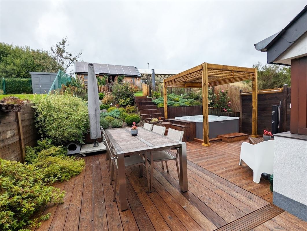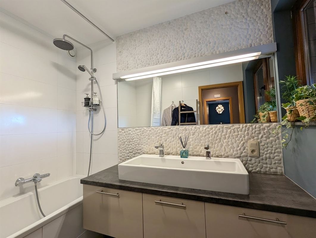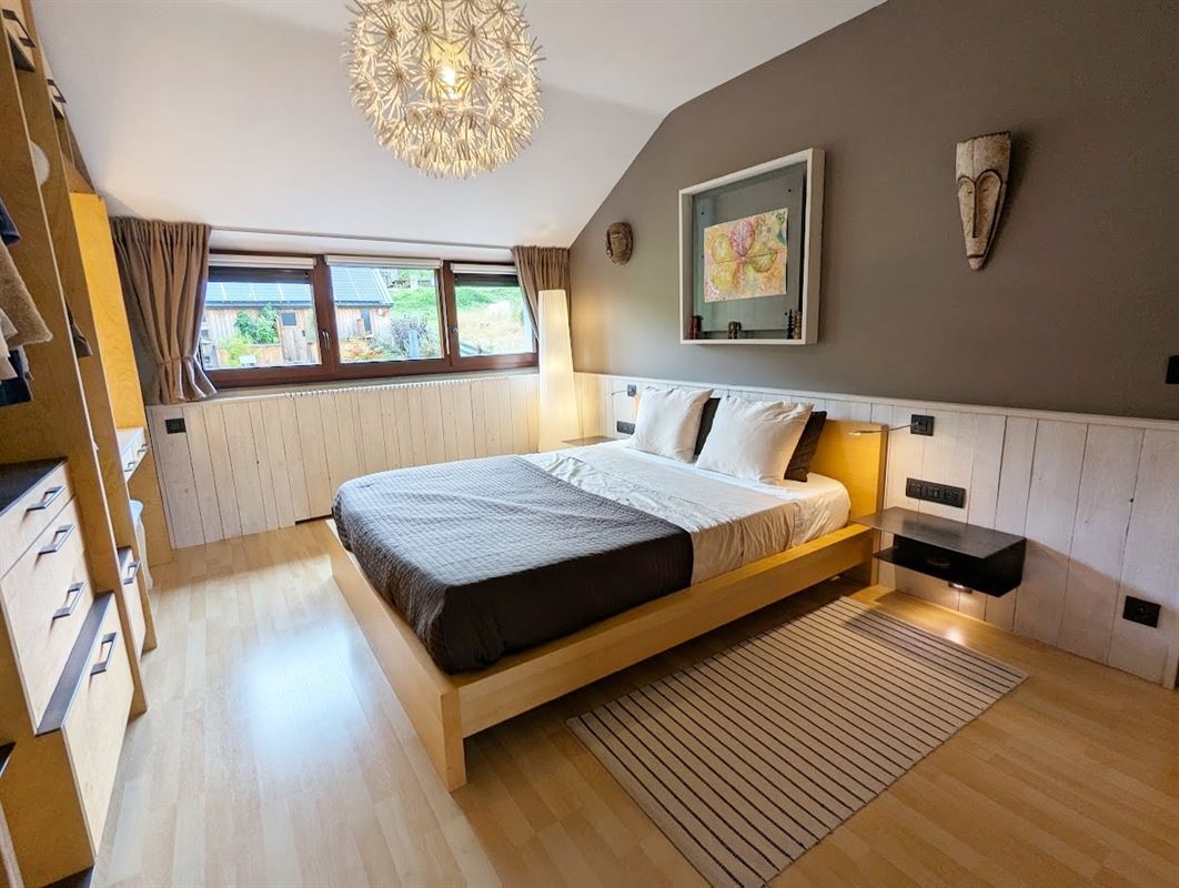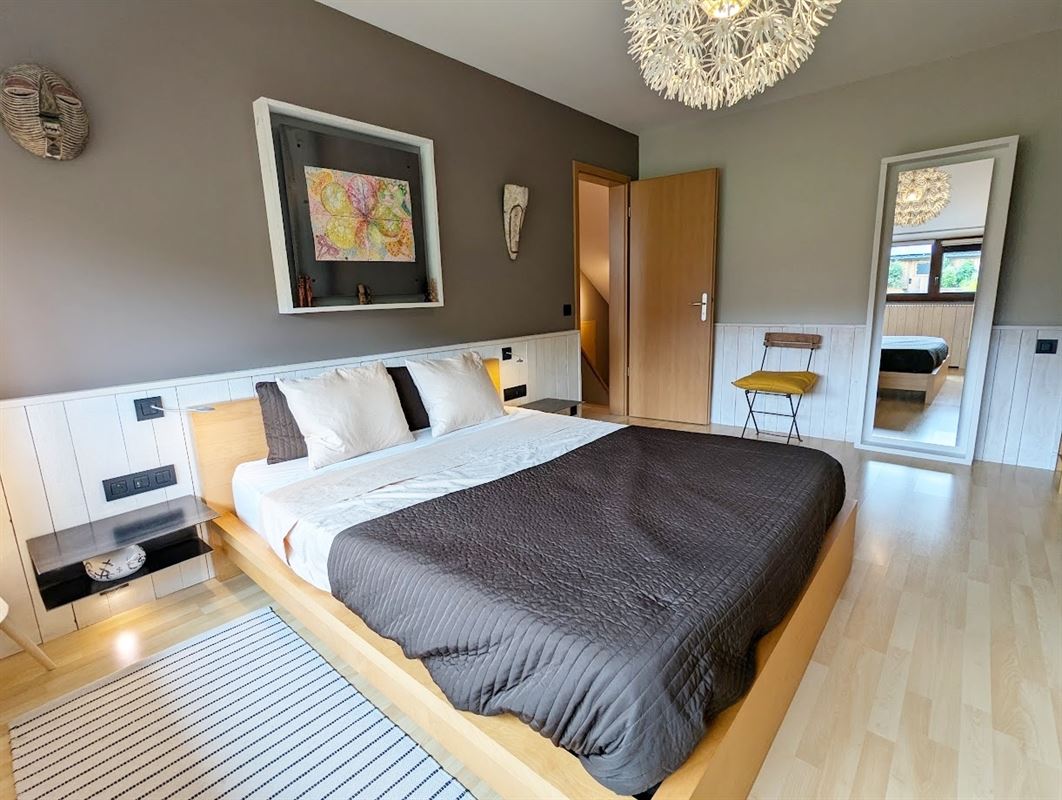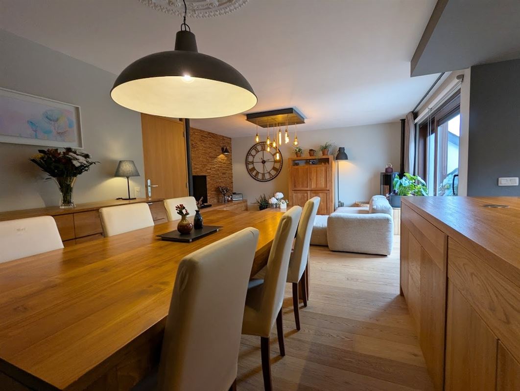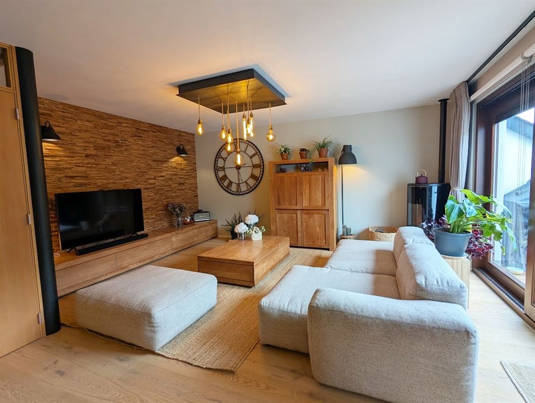!!!!Déjà sous option!!!! Située dans le quartier Saint-Nicolas à Martelange, nous vous présentons cette maison chaleureuse aux finitions soignées. Le spa, les couleurs douces et la présence du bois dans la décoration ne vous laisseront pas indifférents. De plus, sa cuisine composée de chêne massif est entièrement équipée (avec un piano d’une valeur de 10.000€ et un frigo américain). Elle permet de s’adonner à la cuisine avec du matériel de haute qualité. Description de cette maison en demi-niveaux: Rez: hall d’entrée, une buanderie et une chambre de 12,3m². +½: Grande pièce de vie (40m²) ouverte sur la cuisine équipée et donnant accès à la terrasse, un wc. +1: une chambre de 12,3m² et une salle de bain avec baignoire incluant une douche. +1 et demi: une chambre avec son dressing (17,60m²), une seconde chambre ou bureau de 14,10m², un wc -½: une cave de 20 m² et un vide ventilé avec une belle hauteur. L’ensemble est complété par un atelier de 30m², deux places de parking à l’avant et un carport commun pour les poubelles ou pour le stockage. Le jardin est soigné et arboré. La terrasse en bois est équipée d’un spa et d’un bel espace détente. Superficie de 193m² reprend le plancher chauffé de 143m² (information certificat PEB), la cave de 20m² et l’atelier de 30m² (avec permis d’urbanisme). Vous apprécierez la décoration et les finitions soignées, les 12 panneaux photovoltaïques, la cuisine neuve d’une valeur de plus de 30.000€, le spa d’une valeur de 16.000€, les lumières indirectes, le poêle à pellet, la situation, les 4 belles chambres, la cuisine ouverte sur le living, l’espace extérieur entièrement aménagé,... Venez la découvrir sans plus tarder ;) Les superficies sont reprises du plan d'architecte et du certificat PEB. Les surfaces et mesures affichées ne sont données qu'à titre indicatif. Les plans, informations et idées de modifications fournis et réalisés par l’agence Villas ont un caractère indicatif et non contractuel. Toute modification doit recevoir l’accord des autorités compétentes. Les propriétaires se réservent souverainement le droit d’apprécier la hauteur et la qualité des offres. L’agent immobilier n’a pas le pouvoir de vendre. Les propriétaires fixent le montant des offres minimum à prendre en considération. Le refus de l’offre par le propriétaire n’ouvre, au profit de l’offrant, aucun droit à une quelconque indemnité. Le propriétaire, vendeur du bien, dispose de la faculté, de manière totalement libre et autonome, de vendre ou de ne pas vendre. S’il décide de vendre, il n’est nullement tenu de retenir l’offre la plus élevée mais choisit celle qui lui convient le mieux au regard de ses propres critères (montant de l’offre, conditions suspensives, délai de signature, etc.) Il est recommandé aux acquéreurs de prendre des informations complémentaires au besoin auprès des institutions, des architectes, des entrepreneurs,...
