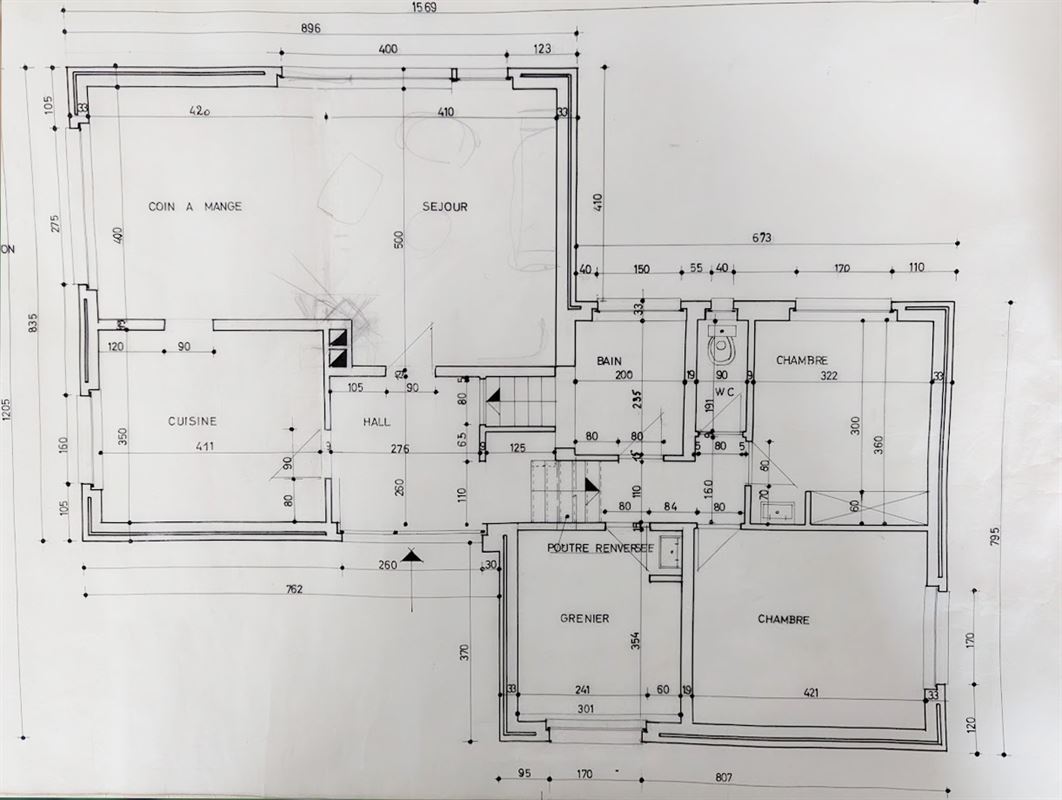 Située à Sesselich sur un terrain de 11a20ca, nous vous invitons à découvrir cette maison 4 façades idéalement située dans une rue calme. Bâtie dans les années 65, cette maison quasiment de plain-pied propose de beaux espaces. Composition: Hall d’entrée (7m²), cuisine (10,88m²), living avec feu ouvert (37,30m²), bureau (7,50m²), véranda (20m²) puis quelques marches pour accéder aux 4 chambres (respectivement de 10,65m² / 12m² / 11,60m² et 14,90m²) un wc et salle de douche. L’ensemble est complété par un garage de 28m², des caves, une buanderie et un grenier. Chaudière (2015), châssis et salle de douche ont été remplacés récemment. Le toit a été refait suite à une tempête dans les années 80. Living et chambres avec du parquet type mosaïque. Douche à l’italienne. Panneaux photovoltaïques. Certes il y a des rafraîchissements à faire mais la construction est de bonne manufacture. Surface de plancher chauffé: 190m² Consommation spécifique: 658 kWh/m².an / Consommation totale: 124976 kWh/an / Numéro: 20240126015597 / PEB: G Les surfaces et mesures affichées ne sont données qu'à titre indicatif. Les plans, informations et idées de modifications fournis et réalisés par l’agence Villas ont un caractère indicatif et non contractuel. Toute modification doit recevoir l’accord des autorités compétentes.